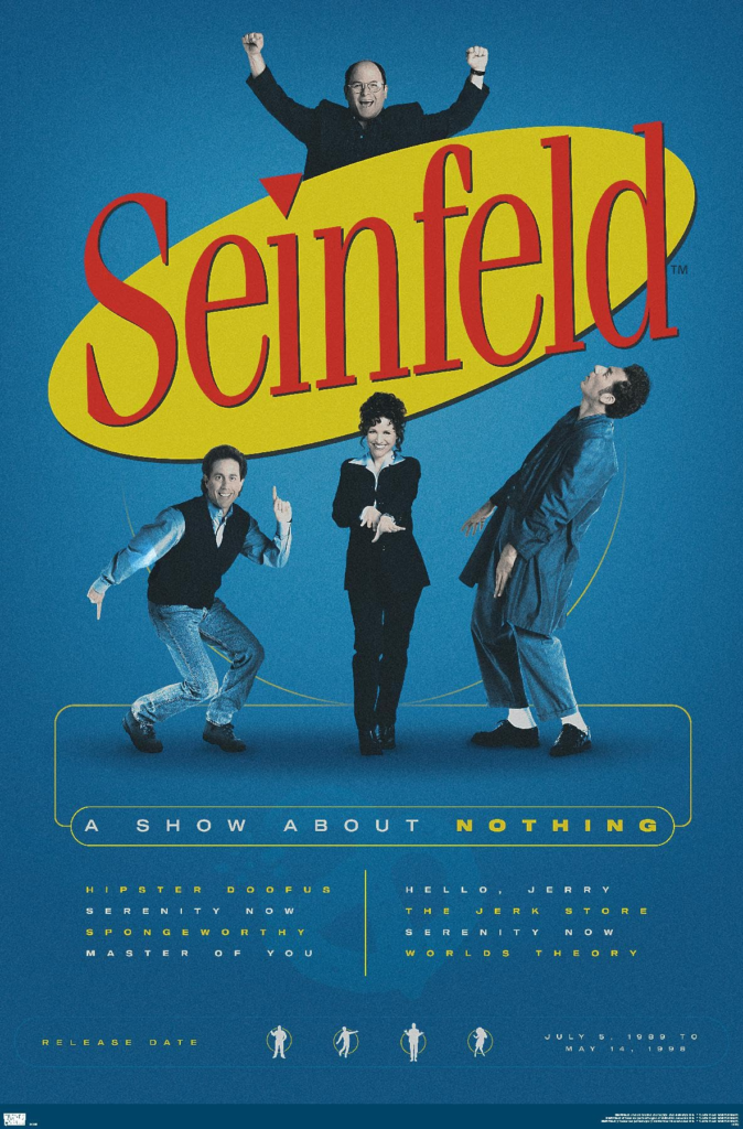Seinfeld je legendární americký sitcom, který se ale nechytil nikde jinde na světě. Nevím moc proč, nepřijde mi, že by člověk musel žít v Americe, aby mu rozuměl. Jerry Seinfeld a Larry David podle mě vytvořili nejvtipnější sitcom dějin. Zkuste si pustit nějaký díl a uvidíte.